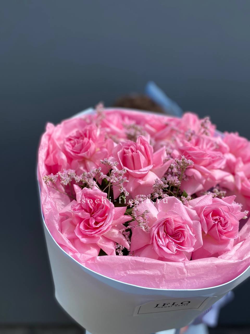 Мы работаем только со свежими цветами — букеты радуют от 7 до 14 дней и дольше при правильном уходе.