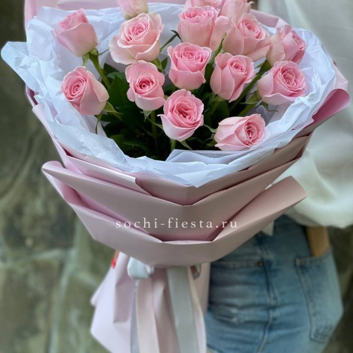 - Монобукет из роз — классика, нечётное число, аккуратная упаковка.