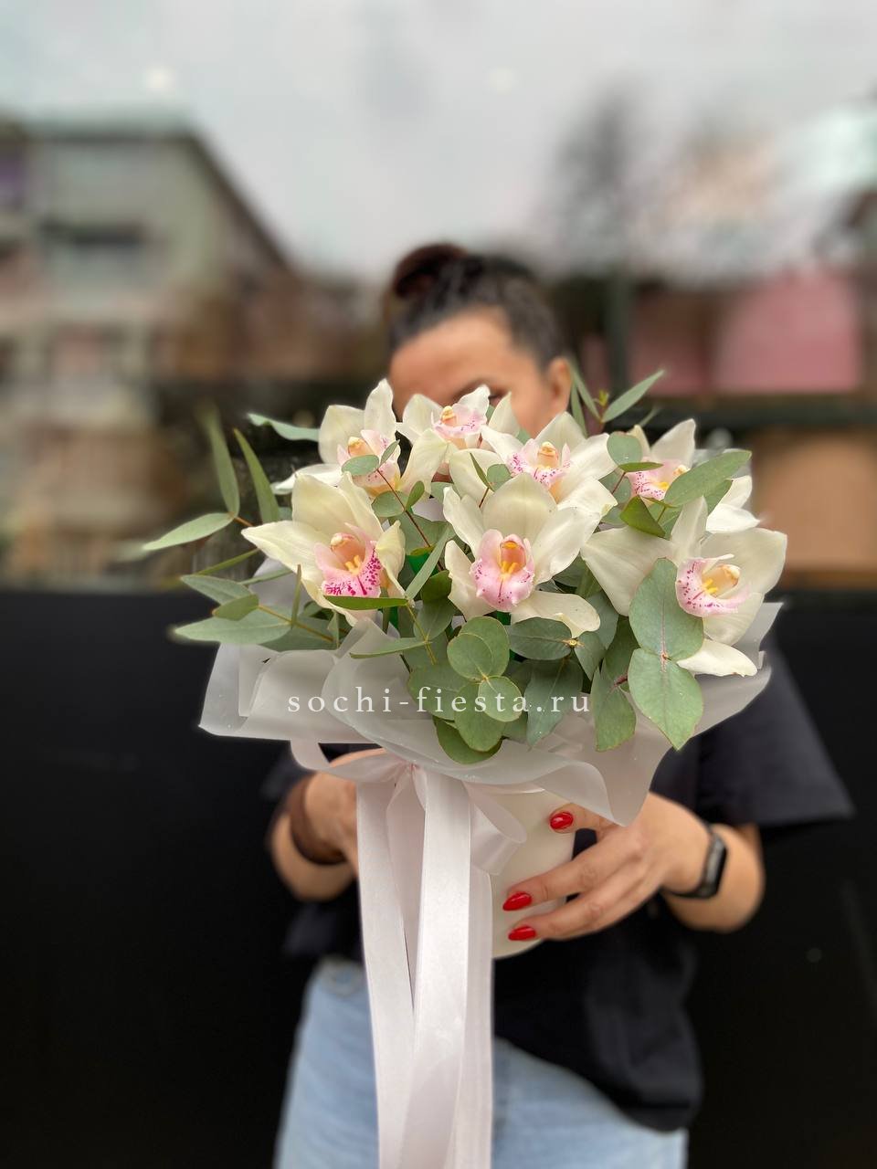орхидея цимбидиум - 7 шт., декоративная зелень, упаковка на выбор.