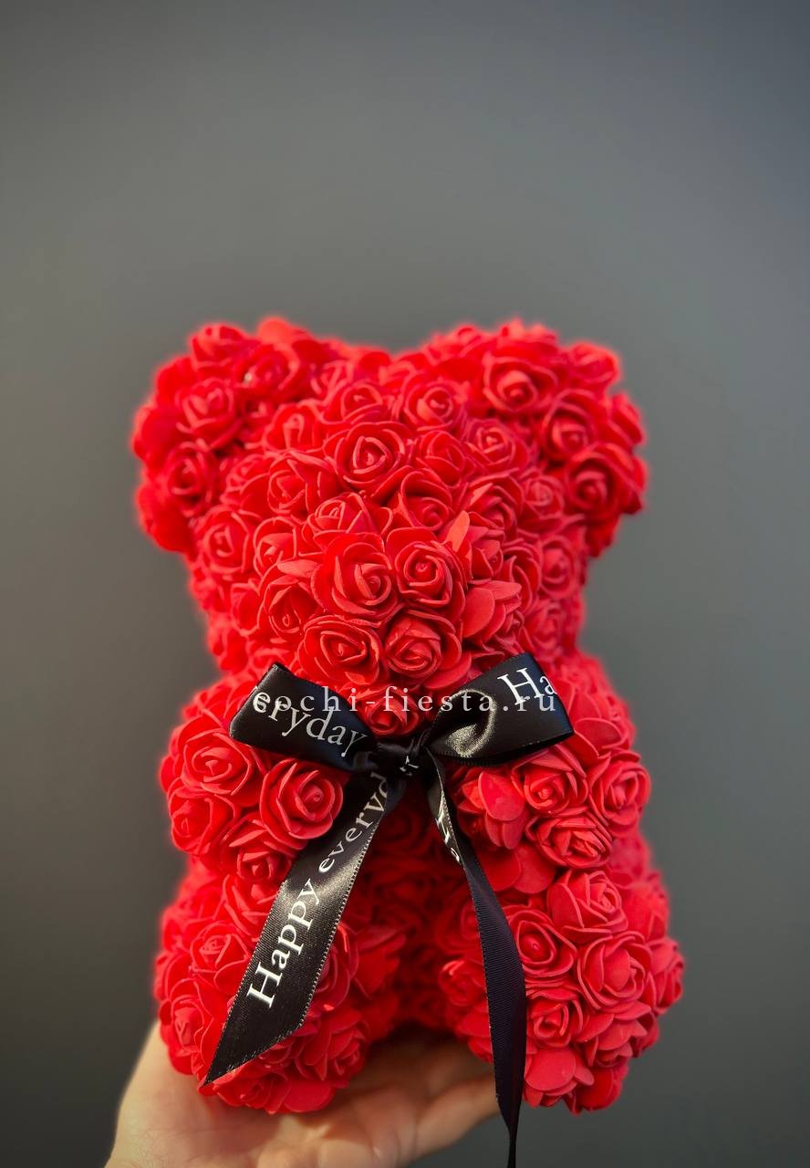 Медведь из роз красный