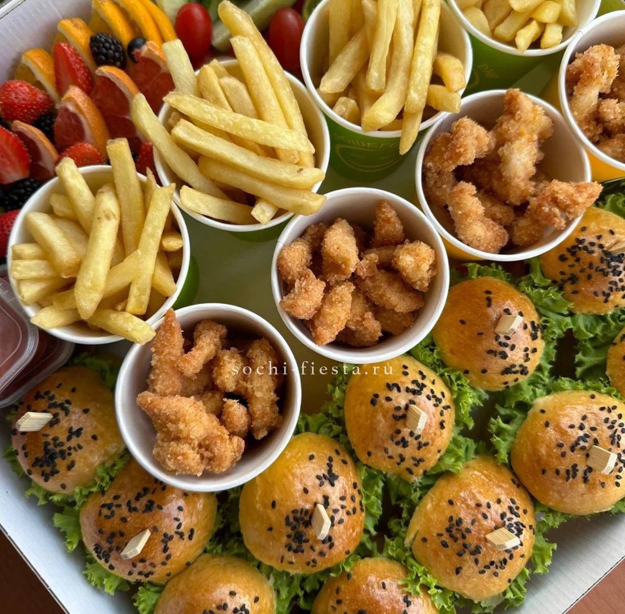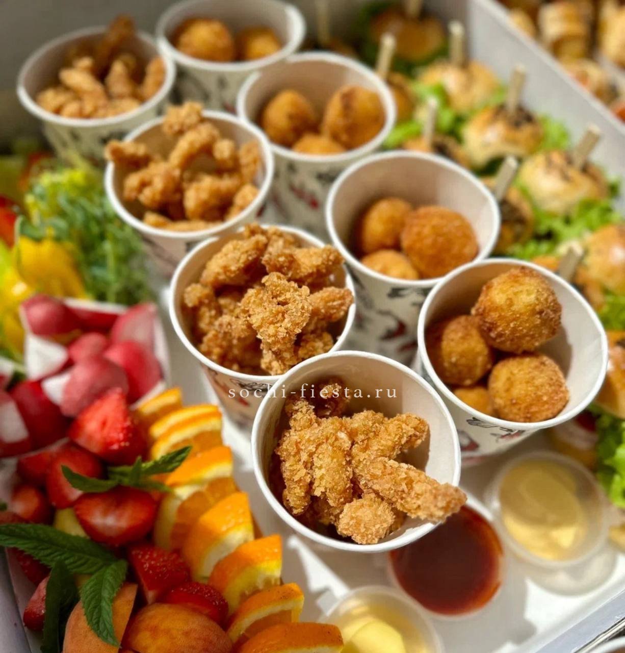 сезонные овощи с муссом из кальмара и авокадо. Щедро уложены в несколько слоев. Вес 2-2,5 кг. Бокс рассчитан на 8-10 персон.