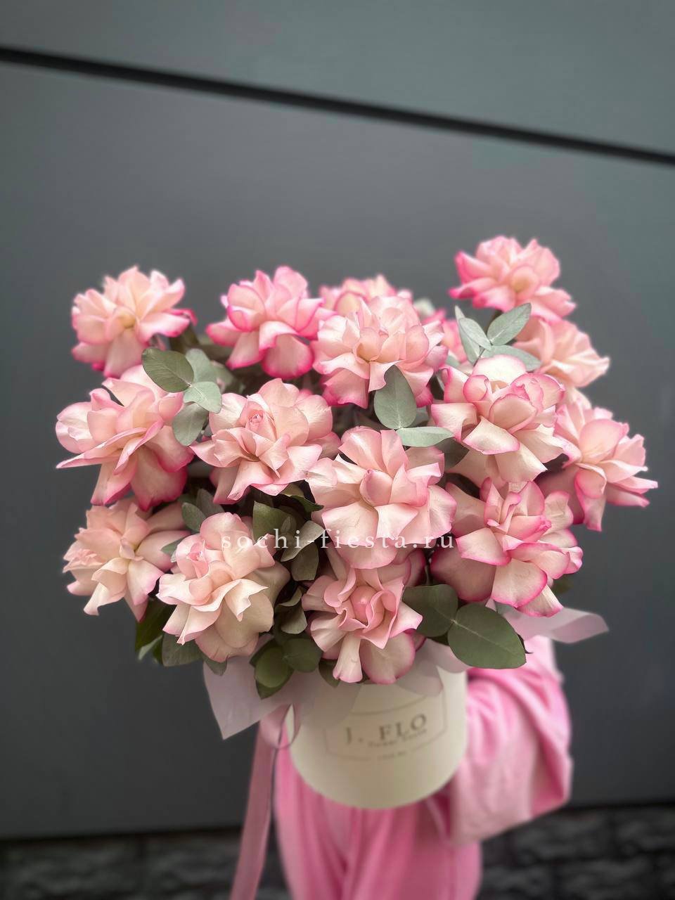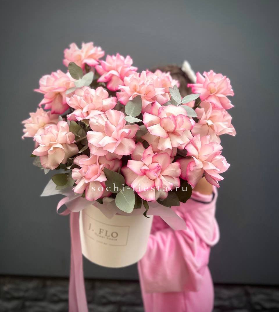 вывернутые розы Венди, цилиндр D20, эвкалипт, лента, упаковка.