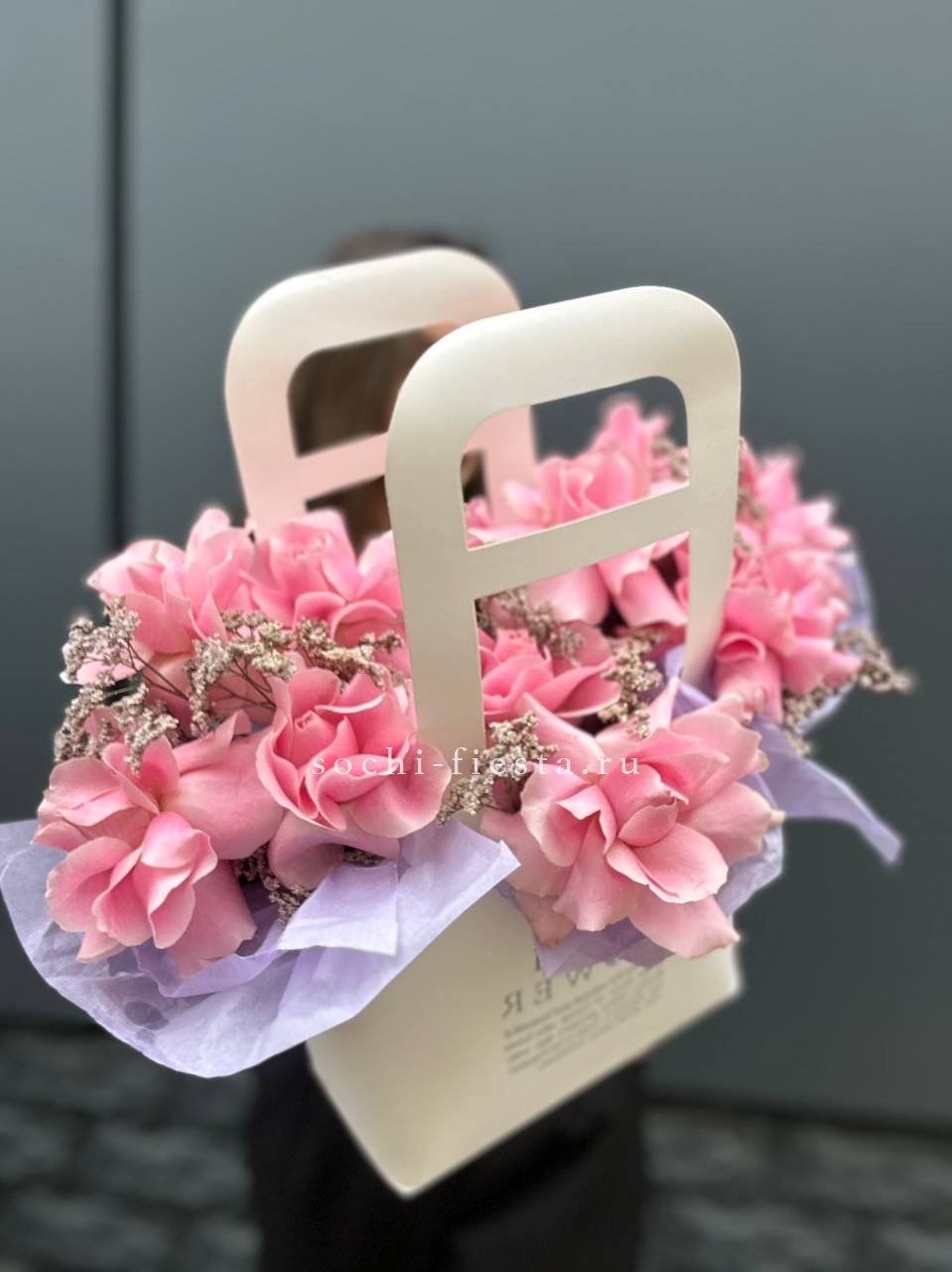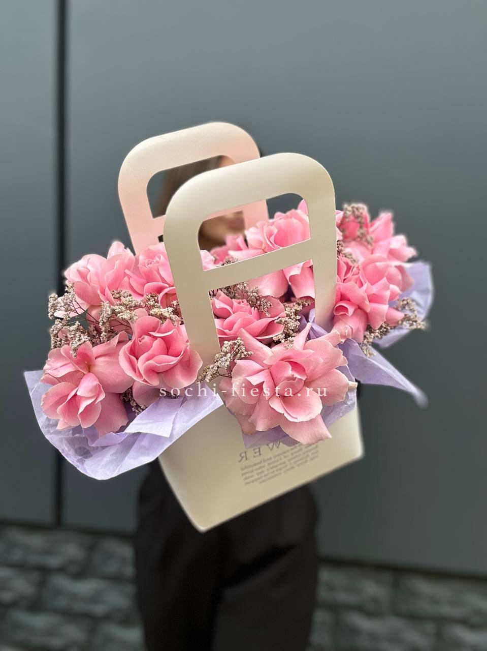 французские розы, лента, сумочка.