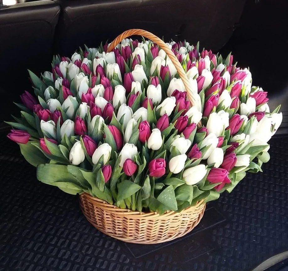 Корзина из 151 тюльпана