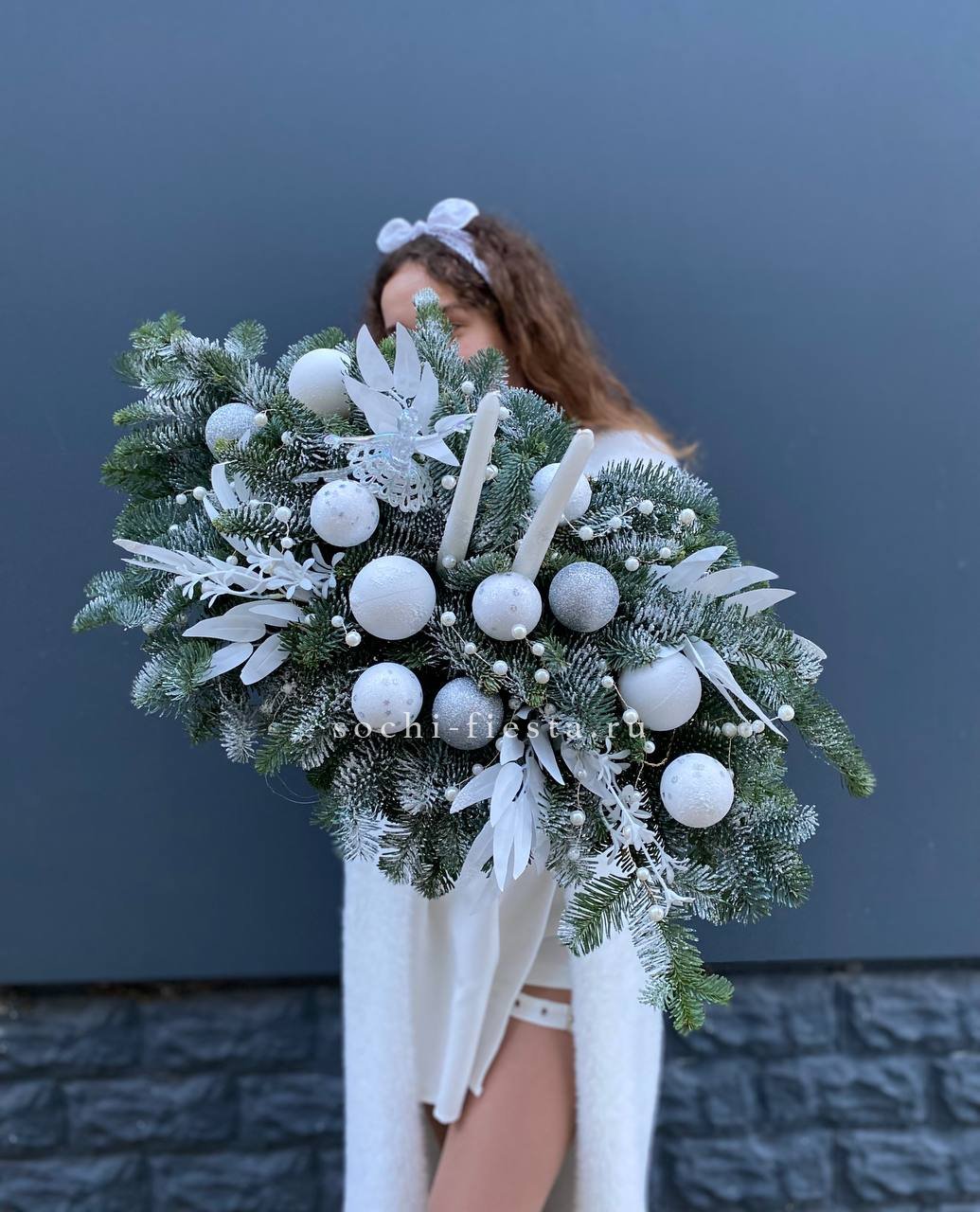 нобилис, балерина, оазис, свечи, новогодние игрушки, декор ВНИМАНИЕ! Готовая композиция (декор) может иметь незначительные внешние отличия от примера на фотографии.
