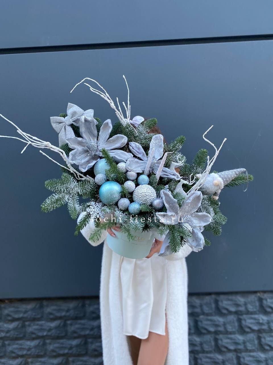 нобилис, цилиндр, оазис, свечи, новогодние игрушки, декор ВНИМАНИЕ! Готовая композиция (декор) может иметь незначительные внешние отличия от примера на фотографии.