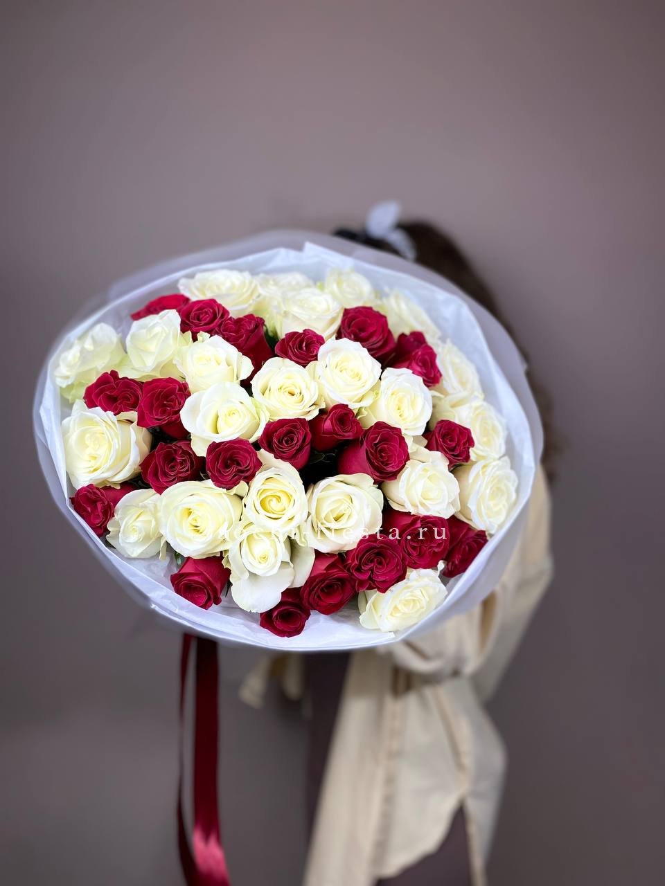 Для заказа товара "Букет из красных белых 45 роз" с доставкой в Чите нажмите в корзину