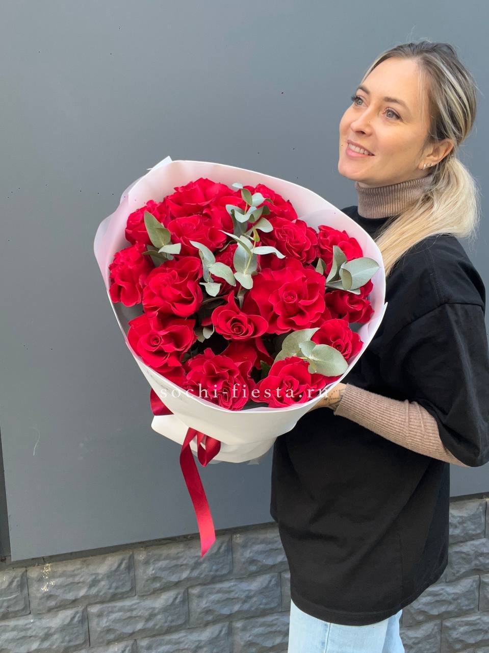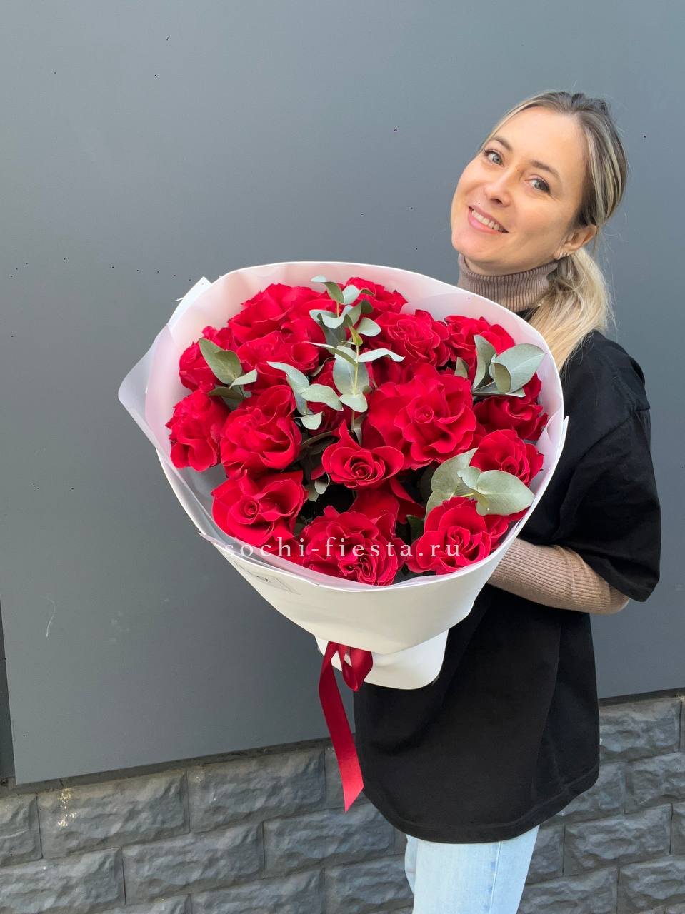 вывернутые розы - 5 шт., эвкалипт - 2шт., лента, авторская упаковка.