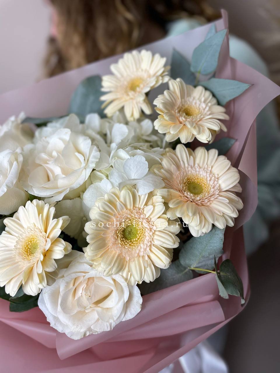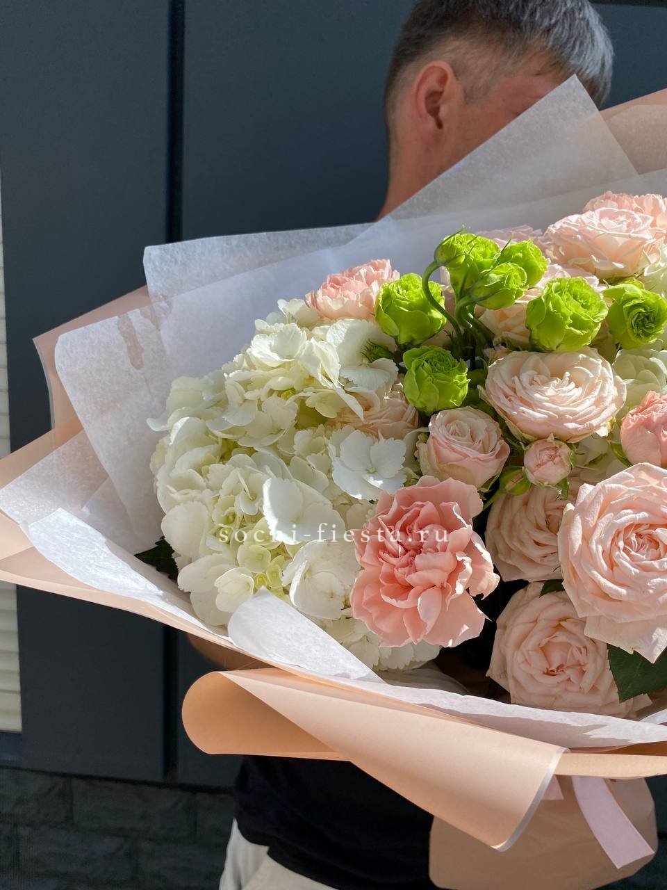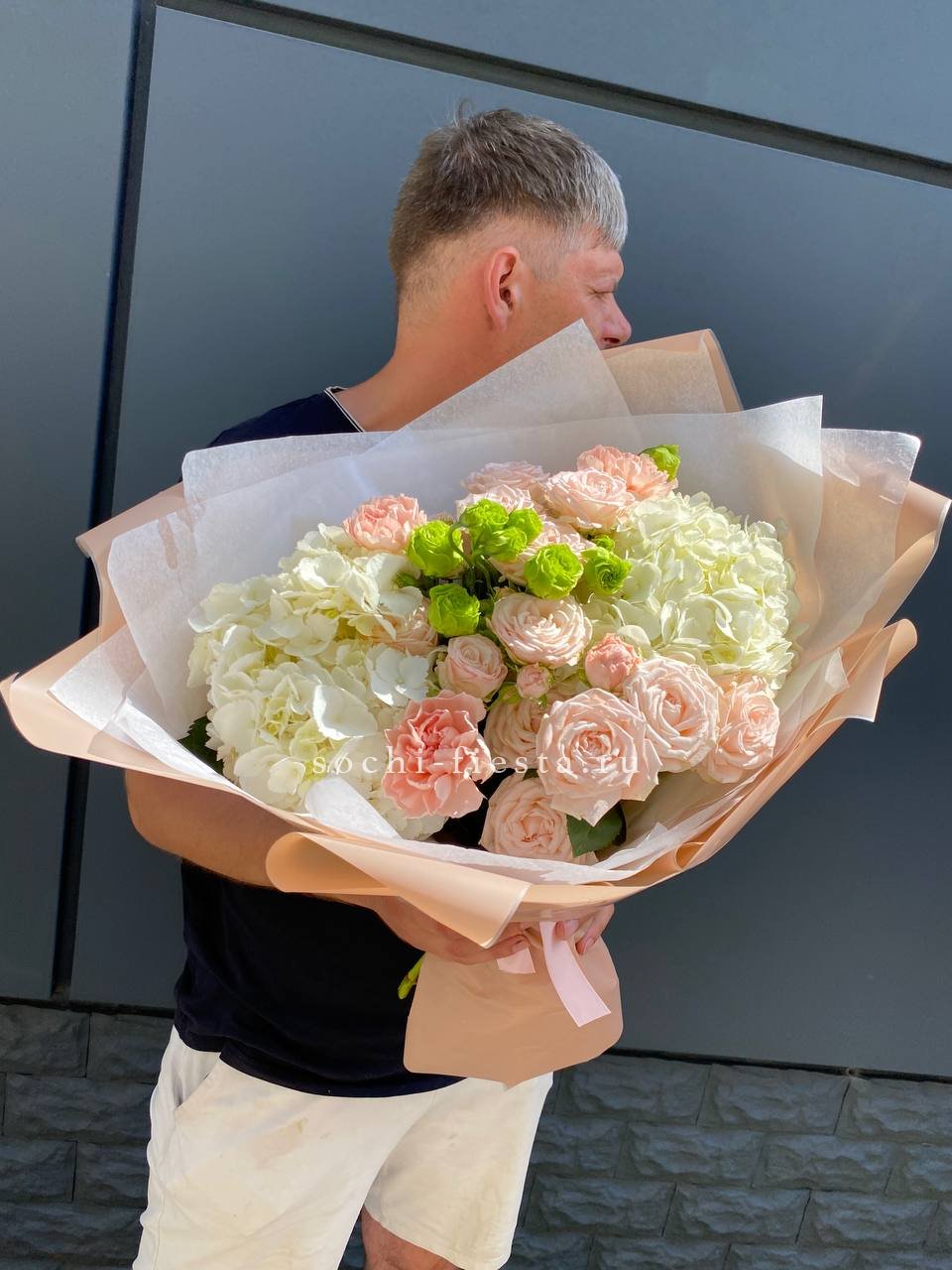 Букет белых гортензий и пионовидных роз