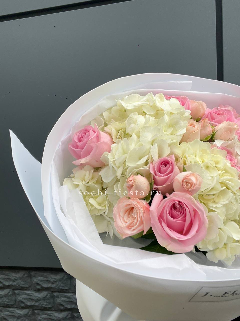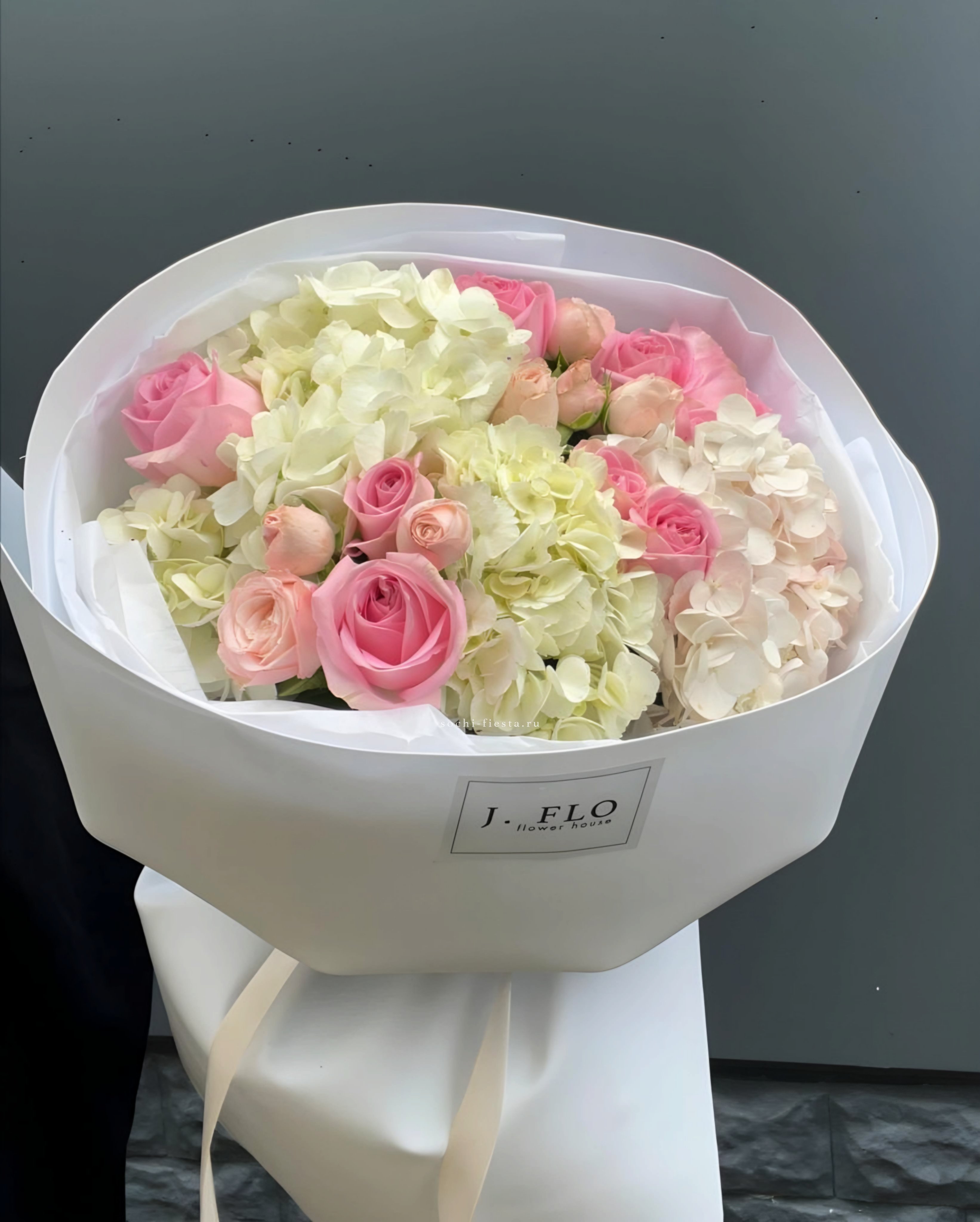 джумилия, диантус, озатамус, гербера, гортензия, пленка.