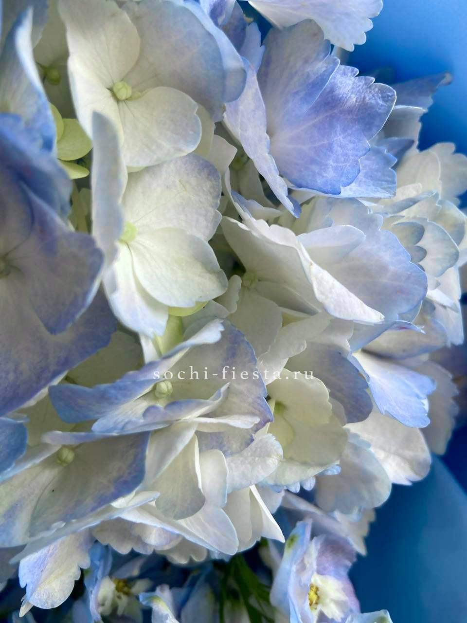 голубая гортензия, маттиола в голубом оформлении.